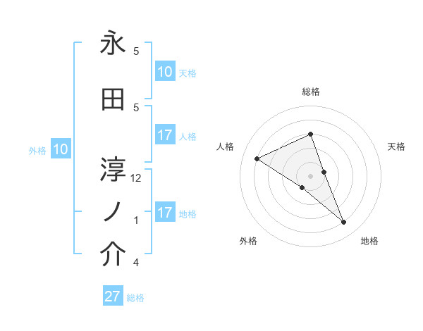 永田 淳ノ介さんの地格は17画の4点