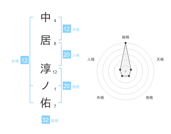 中居 淳ノ佑さんの総格は32画の5点!