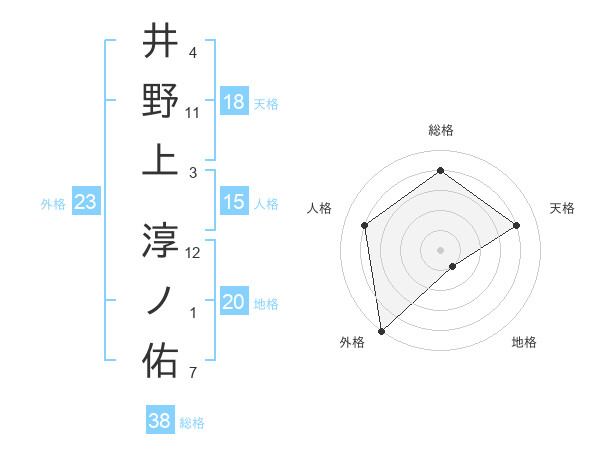 井野上 淳ノ佑さんを姓名の画数から五運を鑑定