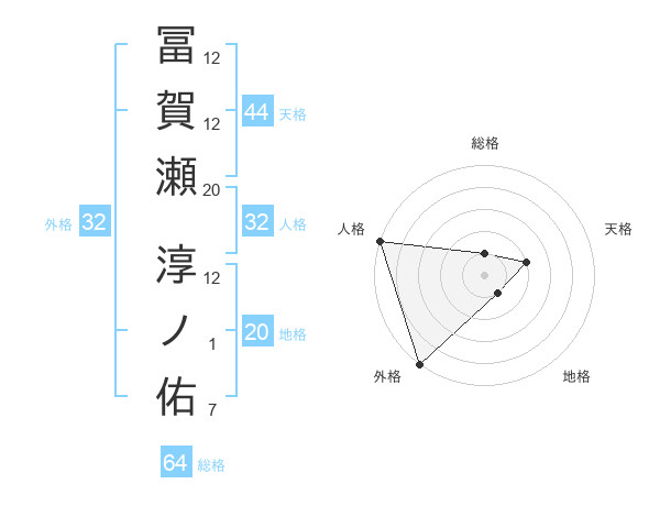 冨賀瀬 淳ノ佑さんの総格は64画の1点!
