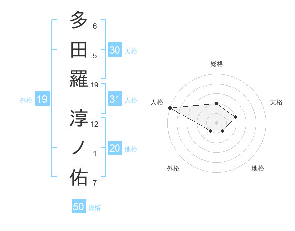 多田羅 淳ノ佑さんの総格は50画の2点!