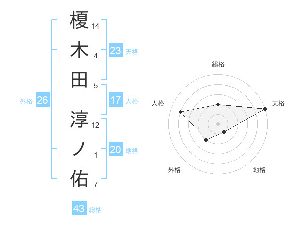 榎木田 淳ノ佑さんを姓名の画数から五運を鑑定
