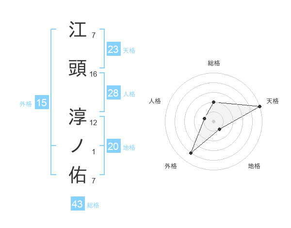 江頭 淳ノ佑さんの天格は23画の5点!