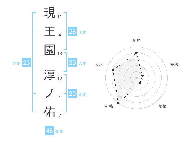 現王園 淳ノ佑さんを姓名の画数から五運を鑑定