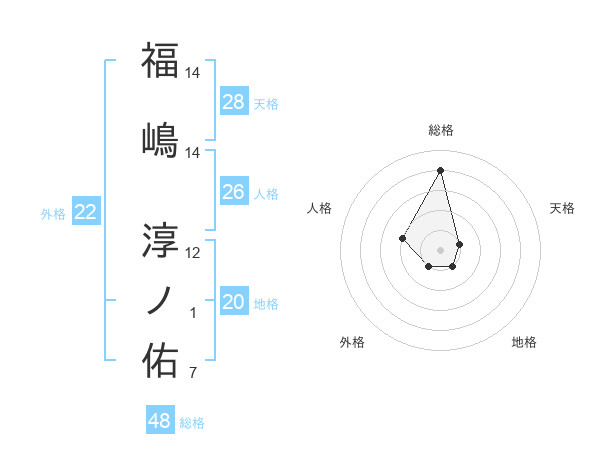福嶋 淳ノ佑さんの総格は48画の4点!