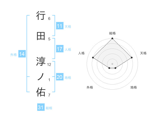 行田 淳ノ佑さんの総格は31画の5点