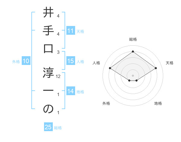 井手口 淳一のさんを姓名の画数から五運を鑑定