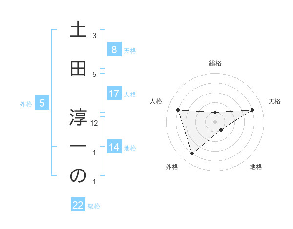 土田 淳一のさんの外格は5画の4点!