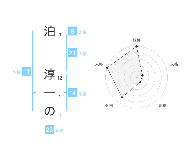 泊 淳一のさんを姓名の画数から五運を鑑定