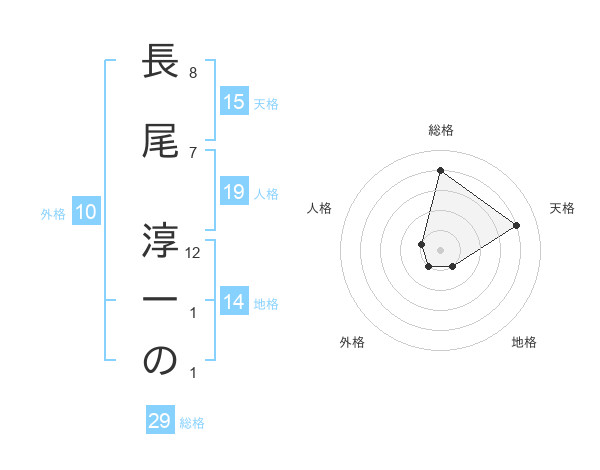 長尾 淳一のさんを姓名の画数から五運を鑑定