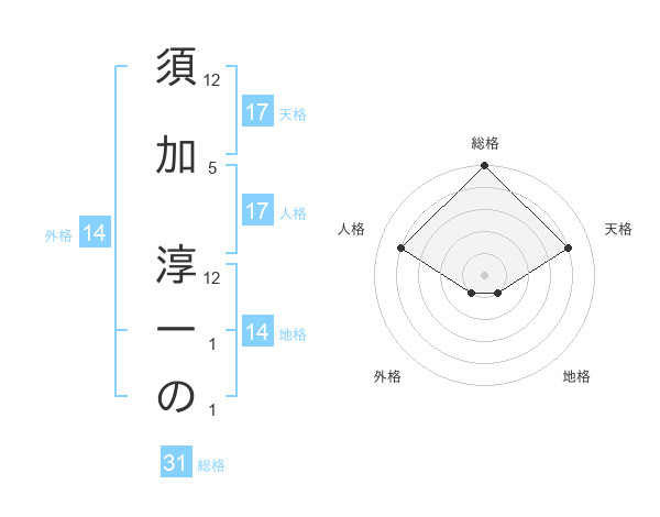 須加 淳一のさんの天格は17画の4点!