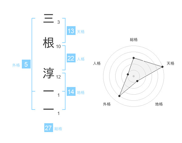 三根 淳一一さんの総格は27画の3点!