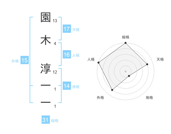 園木 淳一一さんの天格は17画の4点