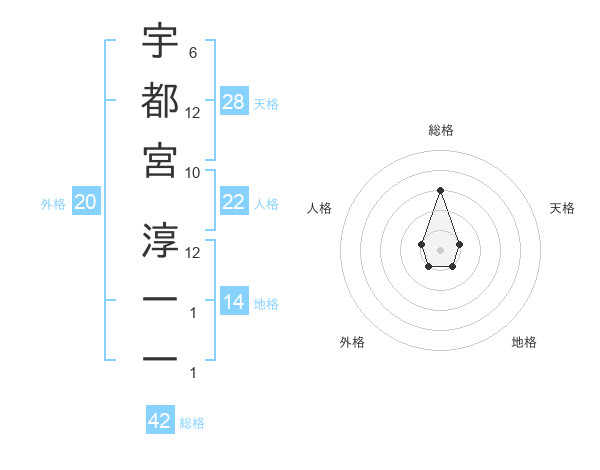 宇都宮 淳一一さんの総格は42画の3点!