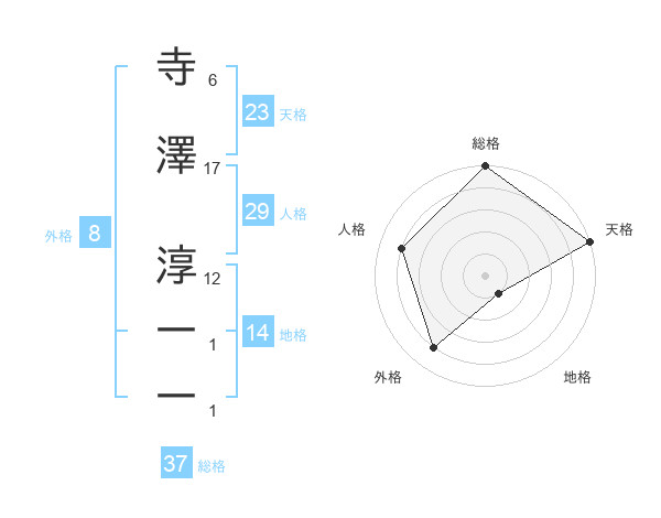 寺澤 淳一一さんを姓名の画数から五運を鑑定