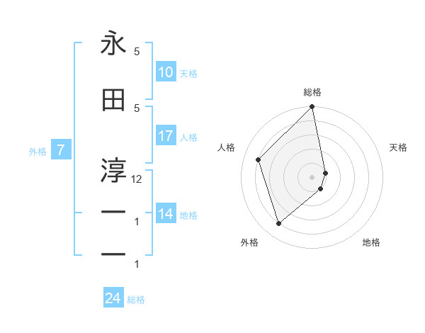 永田 淳一一さんを姓名の画数から五運を鑑定