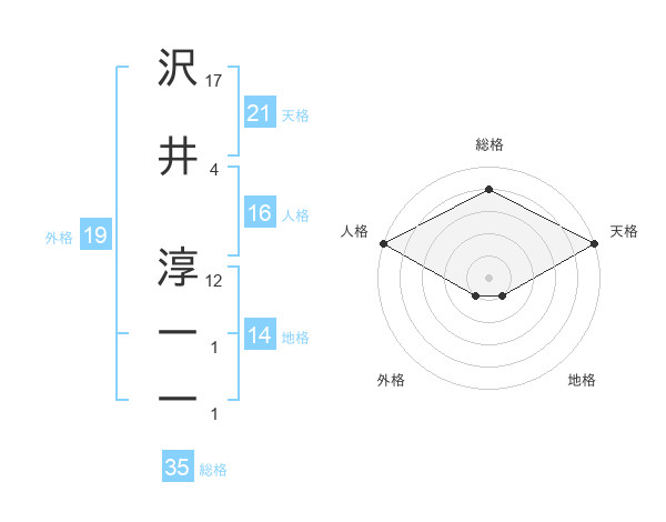 沢井 淳一一さんの天格は21画の5点!