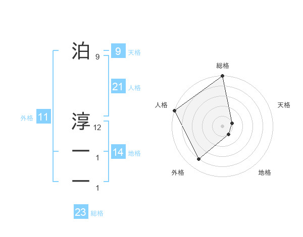 泊 淳一一さんを姓名の画数から五運を鑑定
