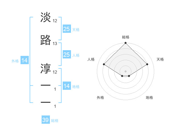 淡路 淳一一さんを姓名の画数から五運を鑑定