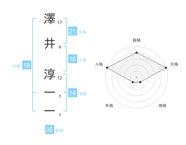 澤井 淳一一さんを姓名の画数から五運を鑑定