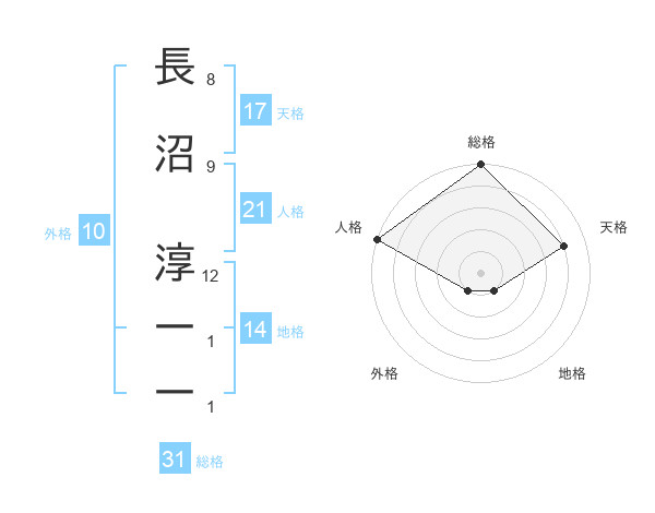 長沼 淳一一さんを姓名の画数から五運を鑑定