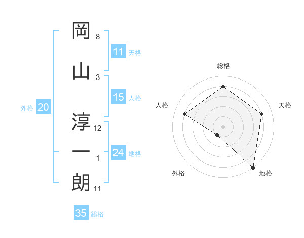 岡山 淳一朗さんの総格は35画の4点!