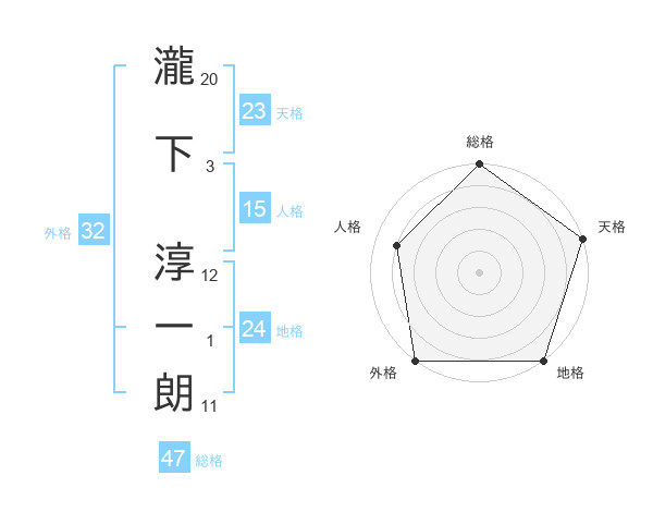 瀧下 淳一朗さんを姓名の画数から五運を鑑定