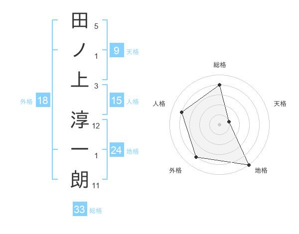 田ノ上 淳一朗さんを姓名の画数から五運を鑑定