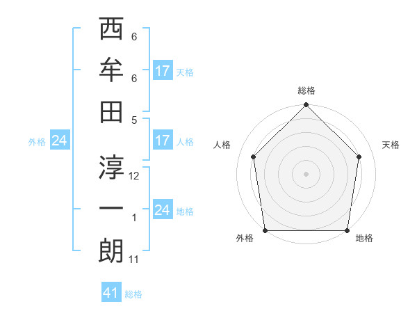 西牟田 淳一朗さんを姓名の画数から五運を鑑定