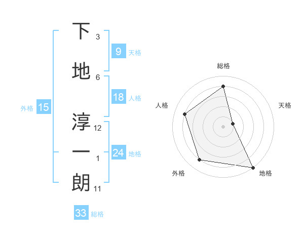 下地 淳一朗さんを姓名の画数から五運を鑑定