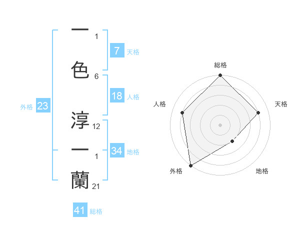 一色 淳一蘭さんの天格は7画の4点!