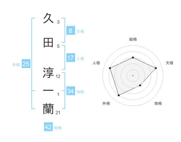 久田 淳一蘭さんを姓名の画数から五運を鑑定