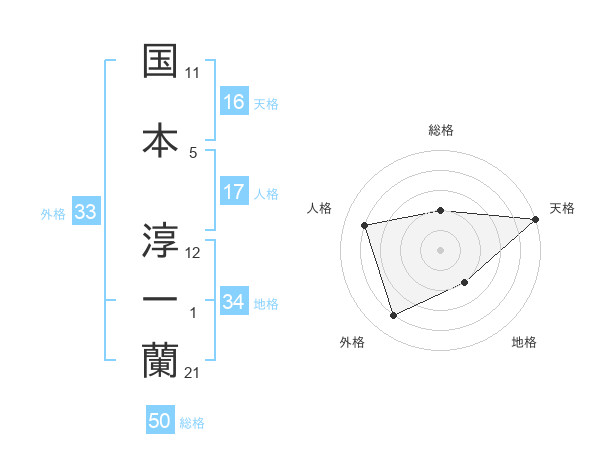 国本 淳一蘭さんを姓名の画数から五運を鑑定