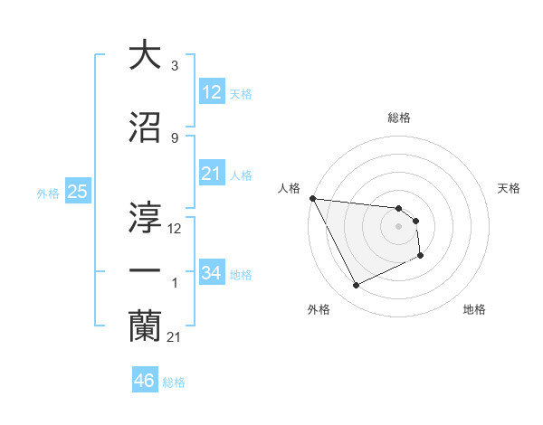 大沼 淳一蘭さんの天格は12画の1点
