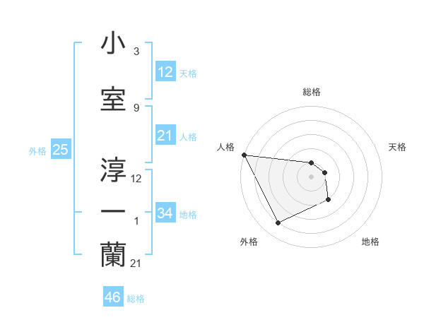 小室 淳一蘭さんの人格は21画の5点!
