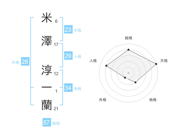 米澤 淳一蘭さんの総格は57画の4点!
