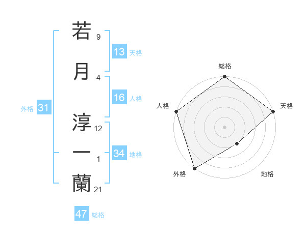 若月 淳一蘭さんを姓名の画数から五運を鑑定