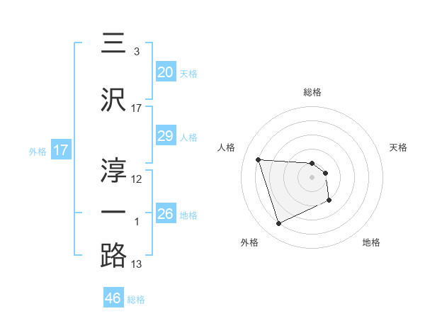 三沢 淳一路さんを姓名の画数から五運を鑑定