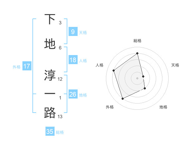 下地 淳一路さんを姓名の画数から五運を鑑定