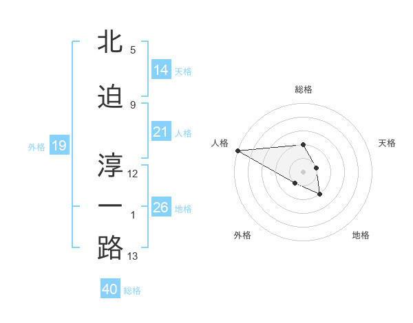 北迫 淳一路さんの総格は40画の2点!