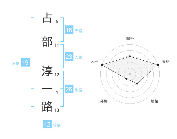 占部 淳一路さんを姓名の画数から五運を鑑定