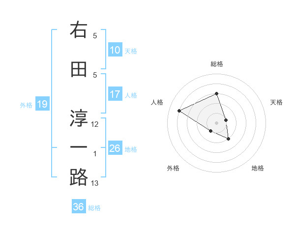右田 淳一路さんを姓名の画数から五運を鑑定