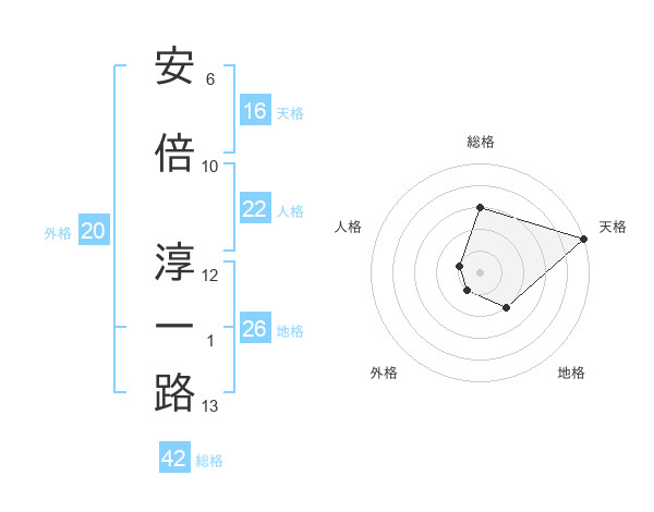 安倍 淳一路さんの天格は16画の5点!