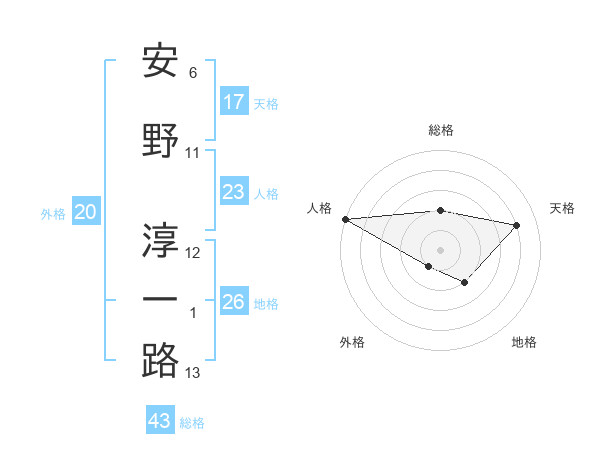 安野 淳一路さんを姓名の画数から五運を鑑定