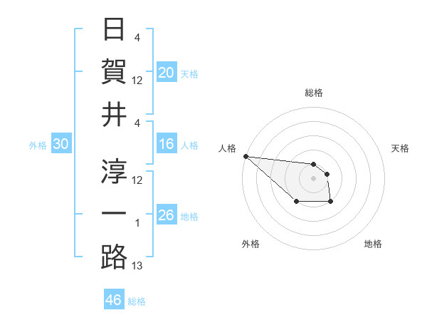 日賀井 淳一路さんを姓名の画数から五運を鑑定