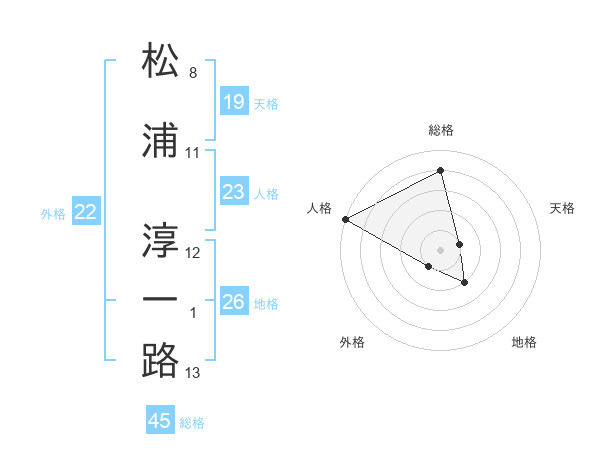 松浦 淳一路さんの総格は45画の4点!