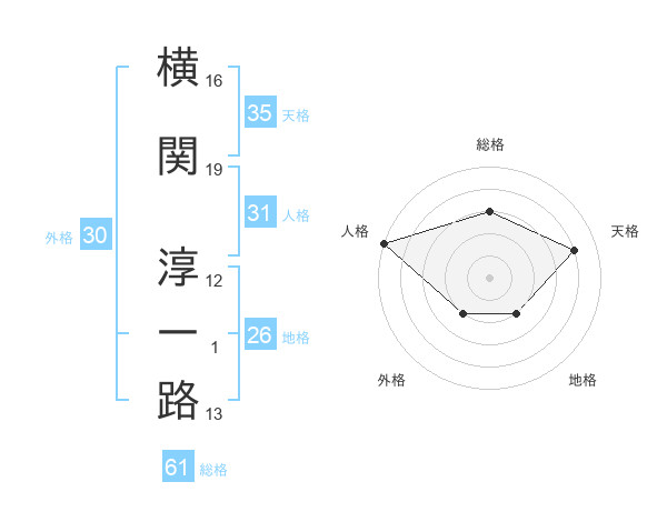 横関 淳一路さんを姓名の画数から五運を鑑定