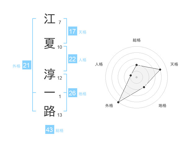 江夏 淳一路さんの外格は21画の5点!
