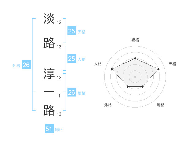 淡路 淳一路さんを姓名の画数から五運を鑑定