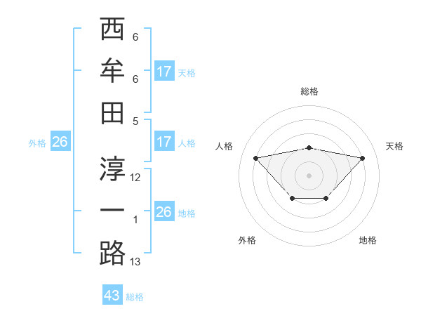西牟田 淳一路さんを姓名の画数から五運を鑑定